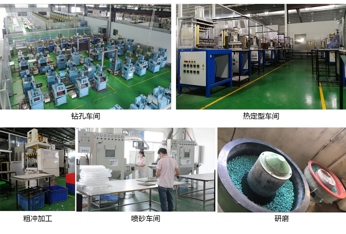 后加工处理工序有:钻孔、热定型、粗冲、 CNC加工、喷砂、研磨等.